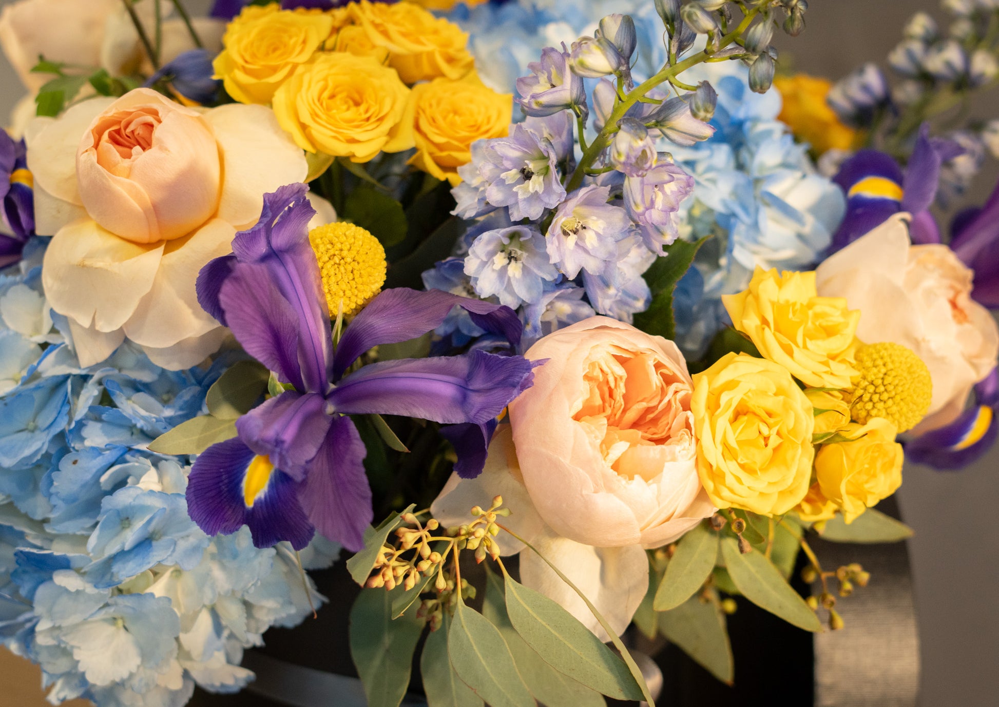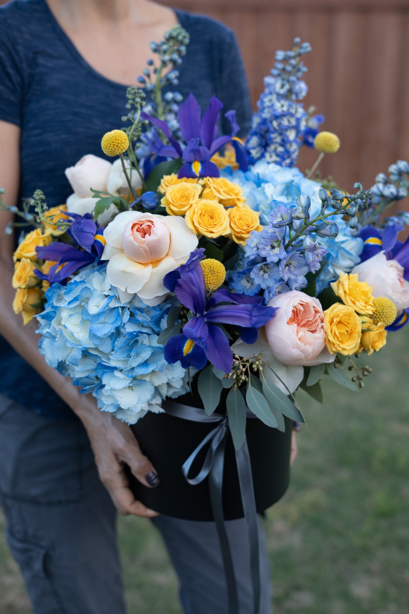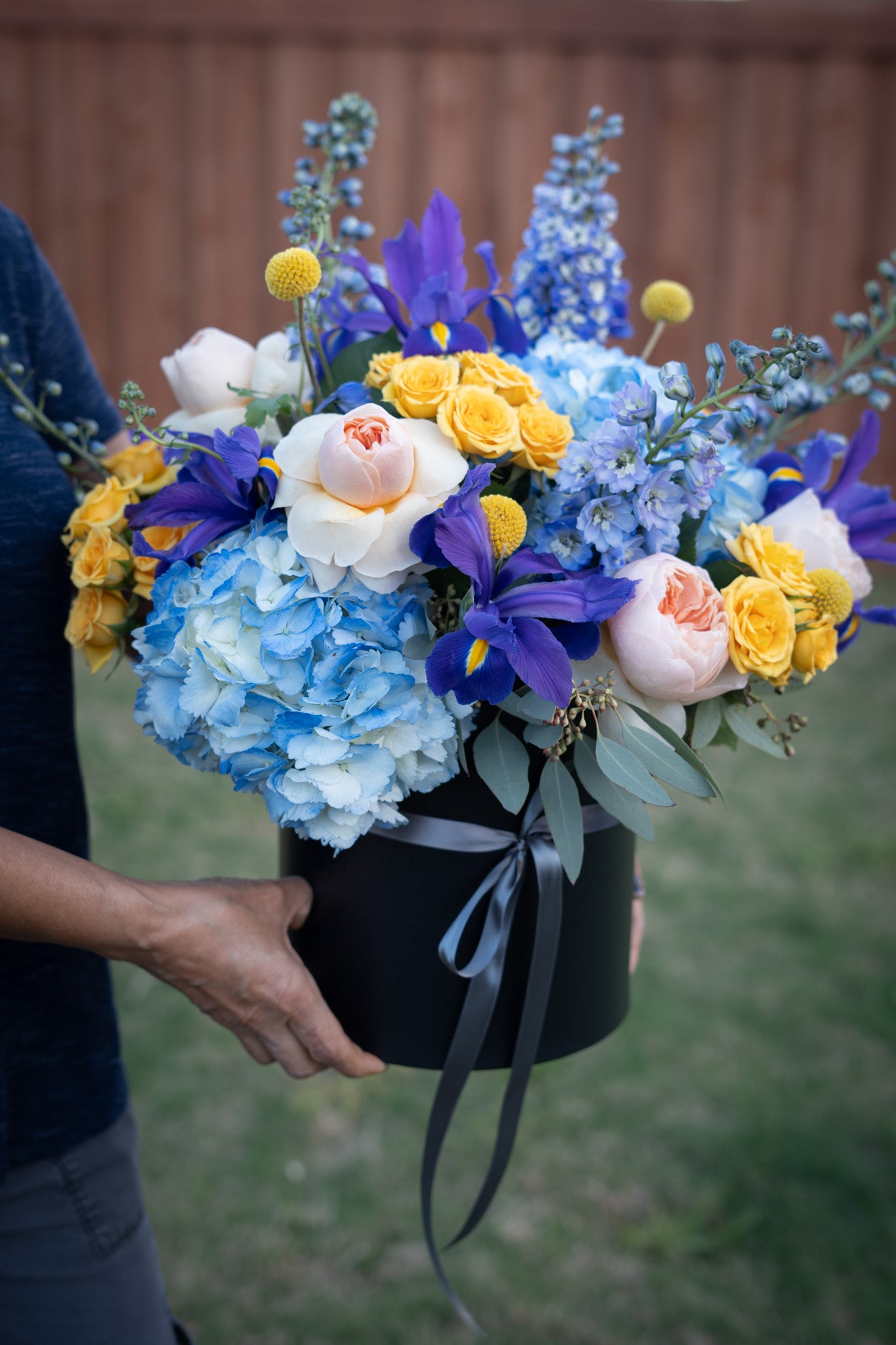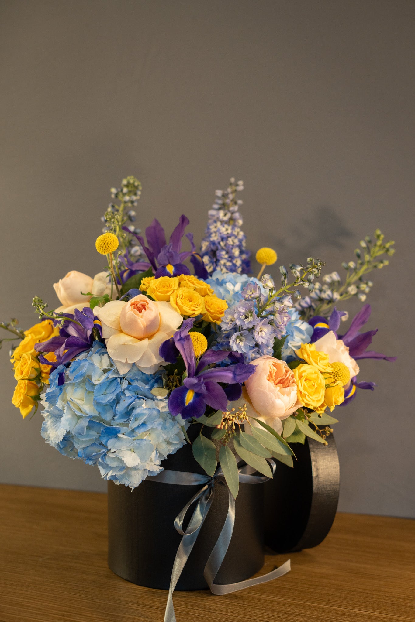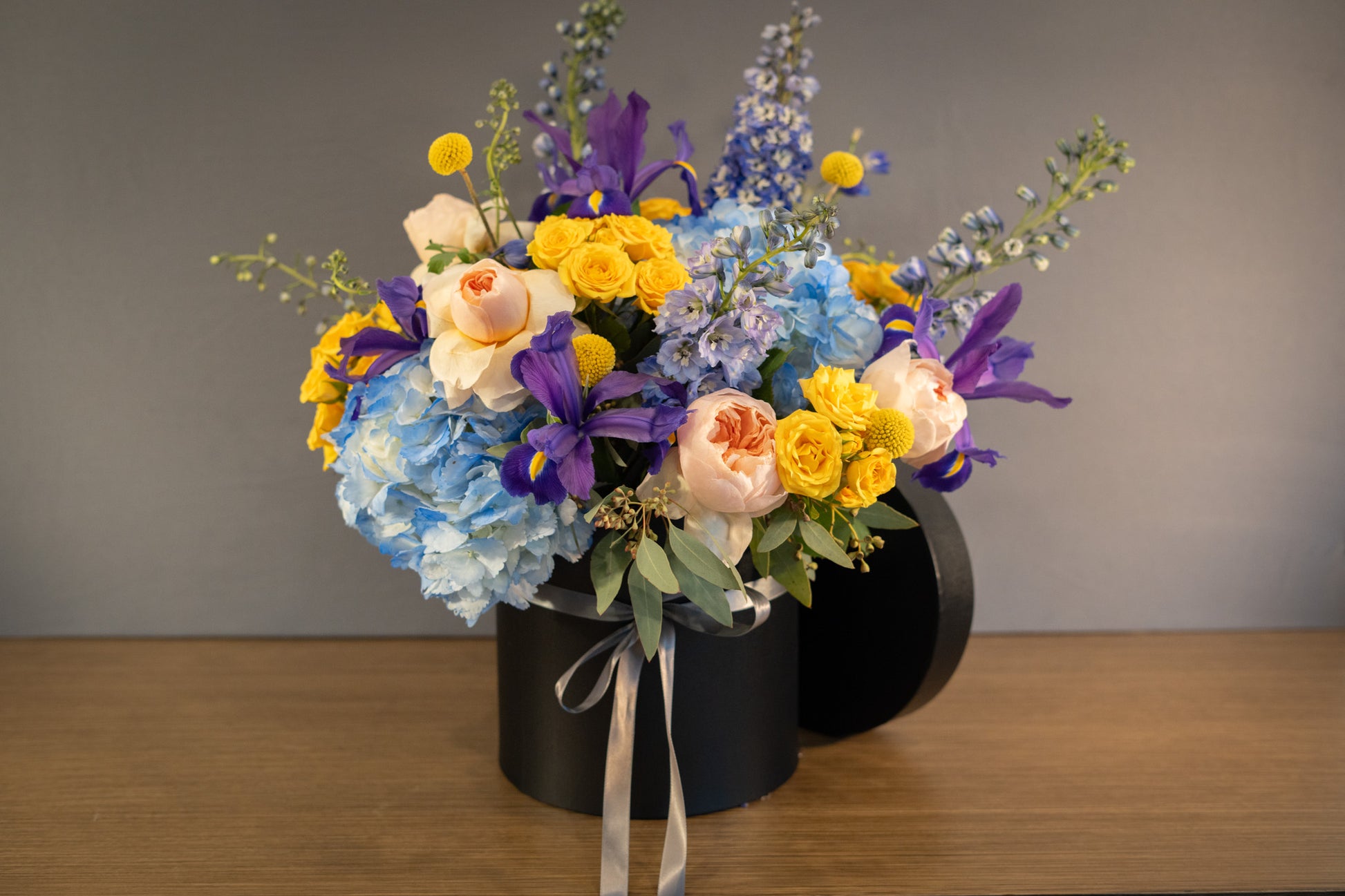 Luxe Botanica, a stunning combination of exquisite flowers and vibrant colors, presented in a charming round box for a truly elegant experience.